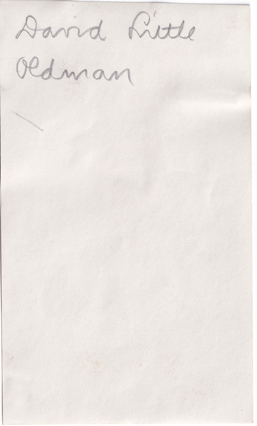 The handwritten note on the reverse side reads: David Little Oldman.