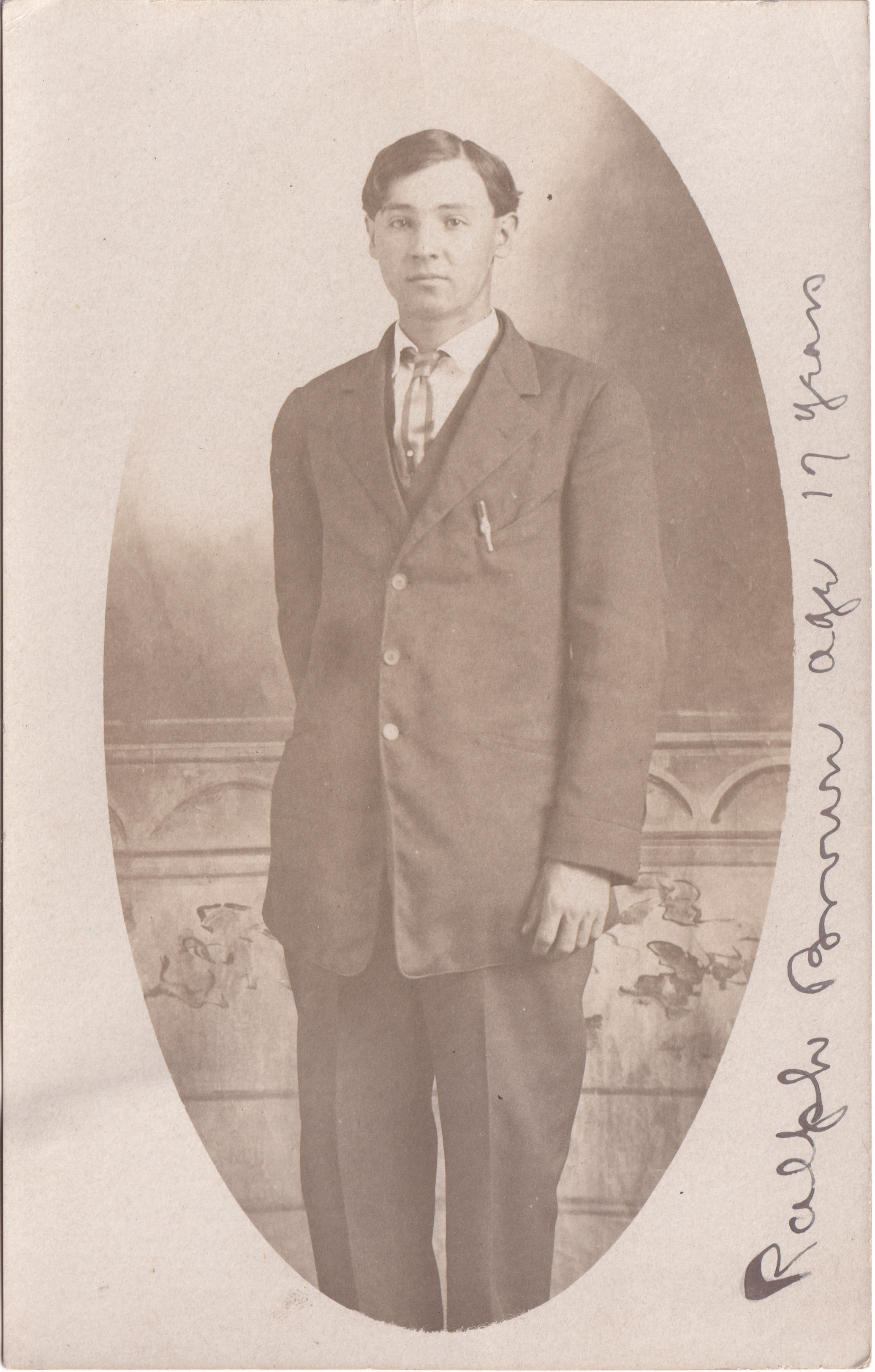 The handwritten note reads: Ralph Brown age 17 years